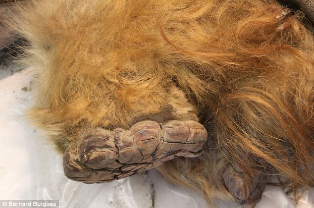 [justify]Những bộ phận bên ngoài như chân, lông hay mắt và thậm chí các cơ quan nội tạng bên trong vẫn còn nguyên vẹn. Chú voi ma mút này có những vết thương trên cơ thể, được cho là của thợ săn hay các loài thú ăn thịt như sư tử. Tuy nhiên một vết rạch dài trên lưng từ một công cụ cho thấy đây chính là hành động tàn sát của người tiền sử. Điều này cho thấy con người đã bắt đầu săn bắt chúng khi lớp băng bao phủ 40% Bắc bán cầu.