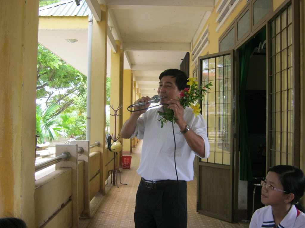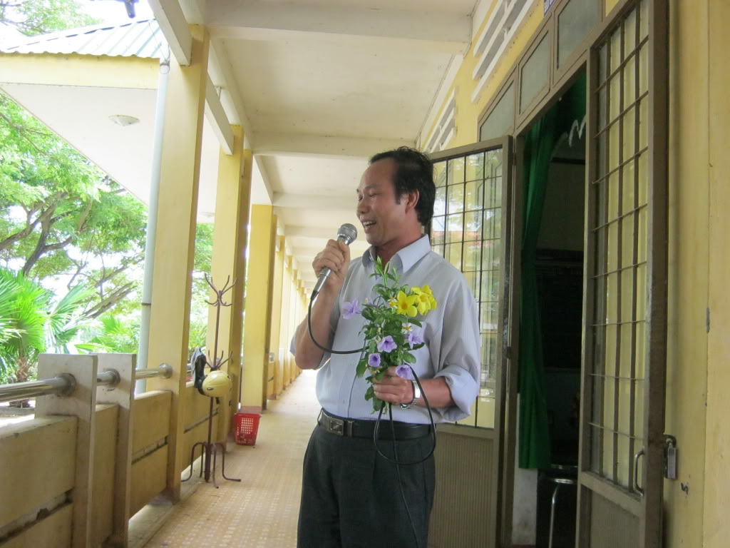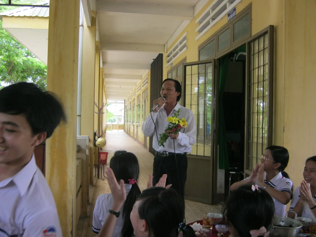 Tặng hoa cho thầy sao không nán lại chút chụp chung luôn hả DNam, ngại quá hả?